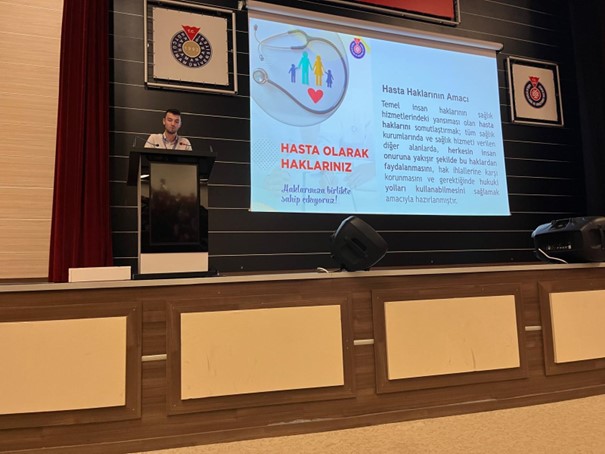 Etkinlikte hasta hakları ve sorumlulukları hakkında bilgilendirmeler yapılmış, hastalarımıza ve yakınlarına broşürler dağıtılmış, çeşitli ikramlarda bulunulmuştur. Ayrıca hastanemizin eğitim yönetimi kapsamında 10 Ekim 2025 tarihinde çalışanlarımıza ve öğrencilerimize yönelik “Hasta Hakları ve Sorumlulukları” konulu bir eğitim gerçekleştirilmiştir.
