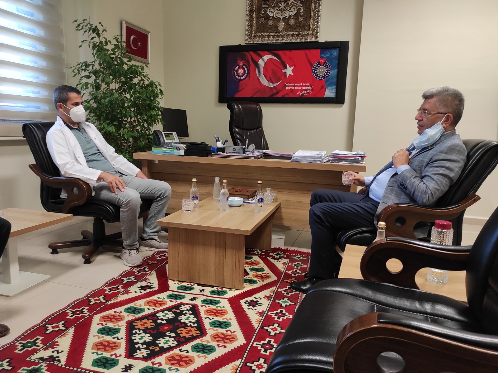Milletvekili Prof. Dr. Sefer Aycan’ın ziyaretleri kapsamında, Tıp Fakültesi Dekan yardımcımız Prof. Dr. İsrafil Orhan, Başhekim Yardımcılarımız Doç. Dr. Aykut Urfalıoğlu, Dr. Öğr. Üyesi Mehmet Kamil Mülayim, Hastane Başmüdürümüz Mustafa Çakallı, Hastane Müdürlerimizden Halil Karaçalı ve Feray Onuş’tan pandemi süreci ile ilgili bilgi aldı.