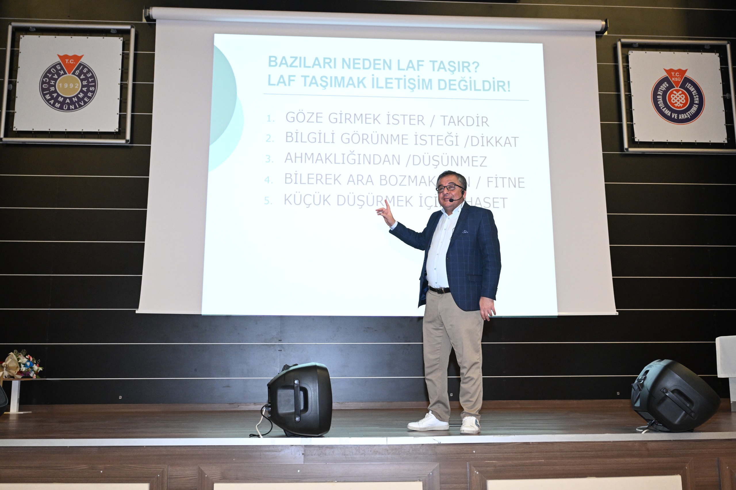 Hastanemizde, Mesleki ve Sosyal İletişim Eğitimi semineri düzenlendi. Sağlık çalışanlarının iletişim becerilerini geliştirmeye yönelik önemli bir eğitim programı gerçekleştirildi.  Yıldız Teknik Üniversitesi Dr. Öğr. Üyesi Mehmet Fatih Akbaba, Kahramanmaraş Sütçü İmam Üniversitesi (KSÜ) Tıp Fakültesi Hastanesi ve Diş Hekimliği Fakültesi Hastanesi akademik ve idari personeline yönelik mesleki ve sosyal iletişim semineri verdi.